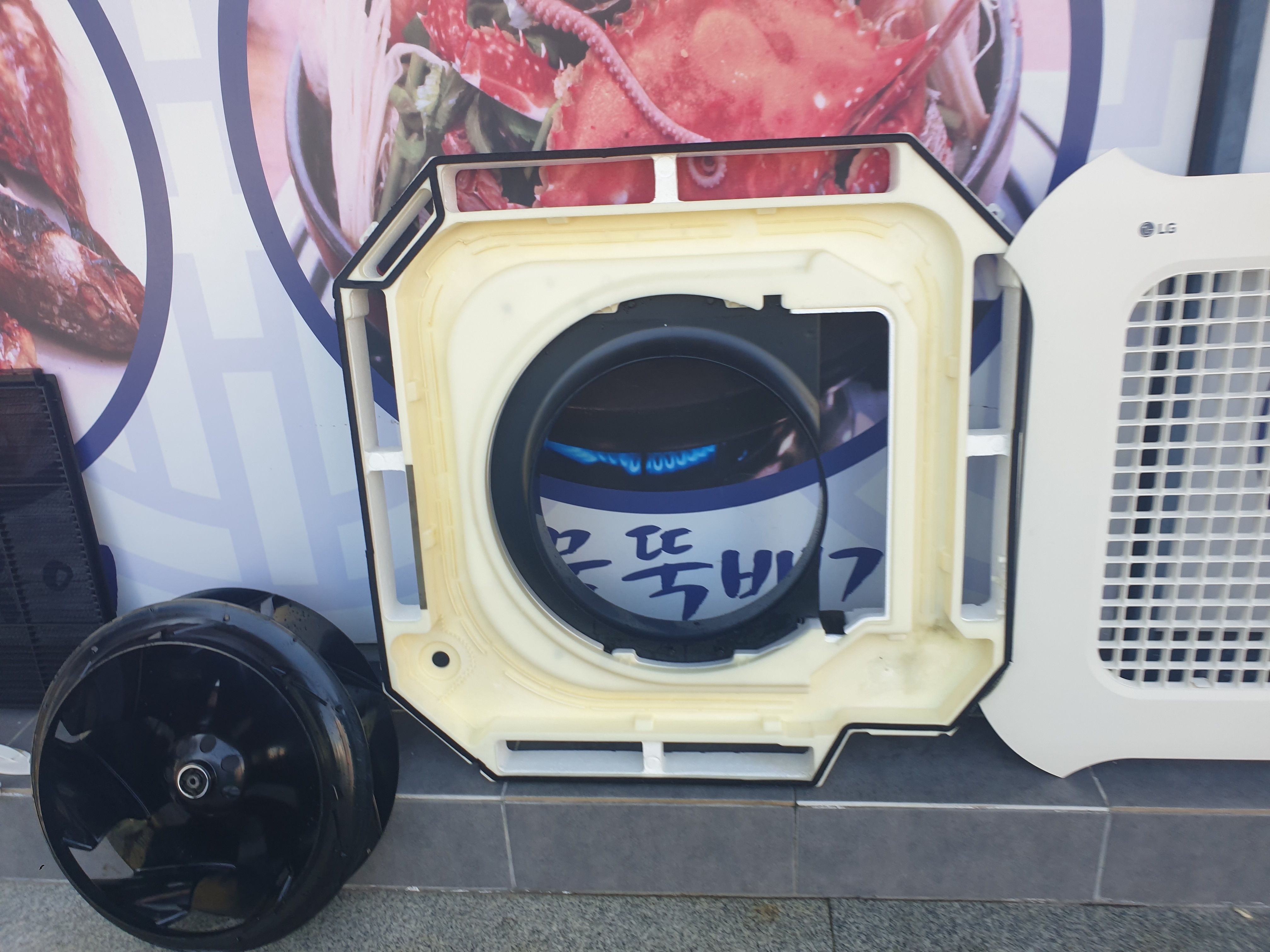 분해가 완료된 에어컨부품에는 곰팡이오염먼지 유해세균등 실내환경에서 발생되는